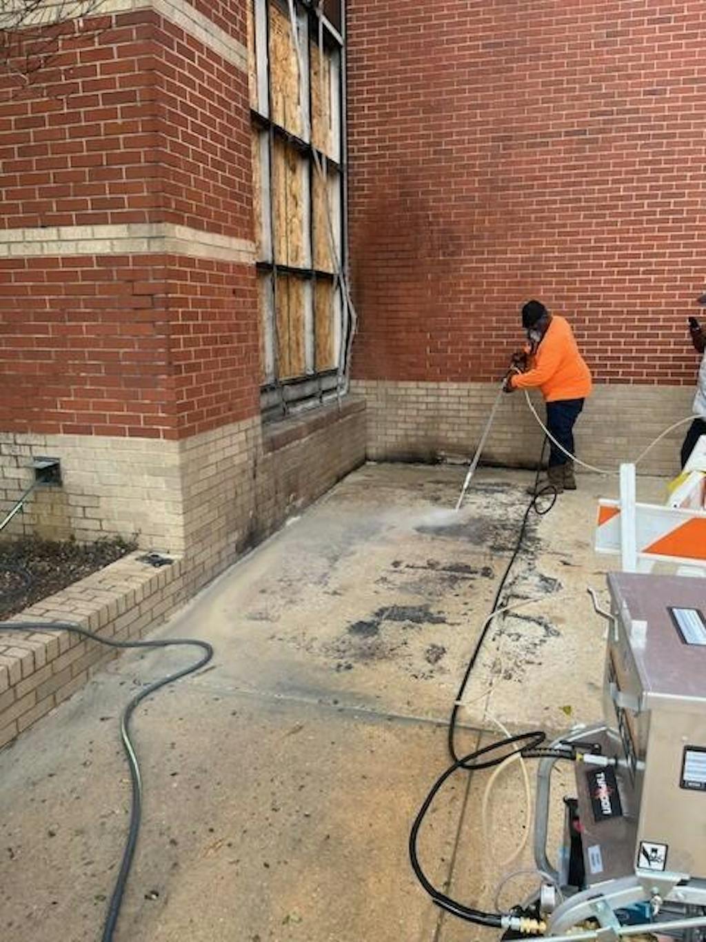 Eliminating fuel stains from concrete is a breeze with the Typhoon Blaster. It is easy to roll out and spot clean the area needed.